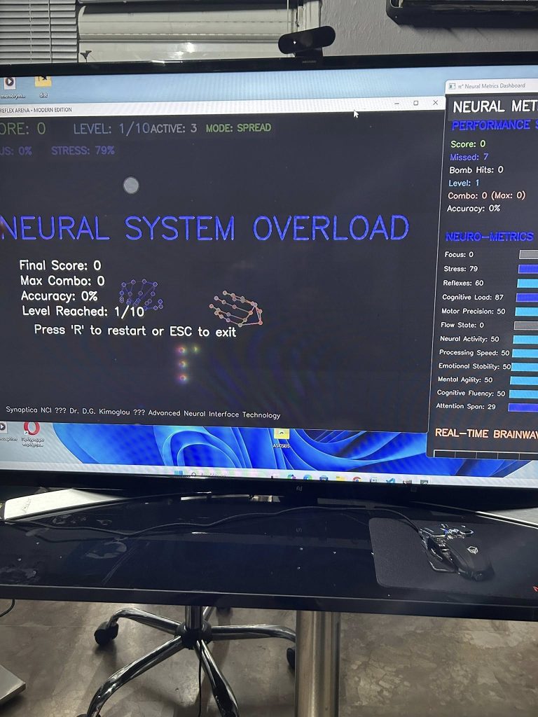 Το Neuro Reflex αποτελεί ένα προηγμένο διαδραστικό νευροτεχνολογικό σύστημα που συνδυάζει στοιχεία γνωστικής νευροεπιστήμης, ανάλυσης συναισθηματικής συμπεριφοράς και βιομετρικής παρακολούθησης. Μέσω ενσωματωμένης κάμερας και πολυεπίπεδων αισθητήρων, καταγράφει και αναλύει σε πραγματικό χρόνο τις κινητικές, συναισθηματικές και νευροφυσιολογικές αντιδράσεις του χρήστη σε ένα περιβάλλον εμπλουτισμένης αλληλεπίδρασης.